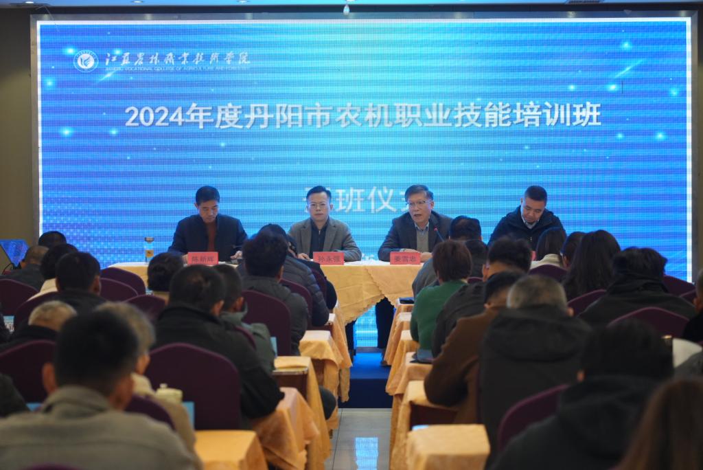 12月1日,2024年度丹阳市农机职业技能培训班在我院开班。本次活动由丹阳市农业农村局主办,我院与江苏省农村专业技术协会共同承办。开班仪式上,丹阳市农业综合执法大队大队长孙永强、省农村专业技术协会姜雪忠,以及学校乡村振兴学院副院长万孝军等出席。来自丹阳市基层农机岗位的150名从业人员参加了本次培训。