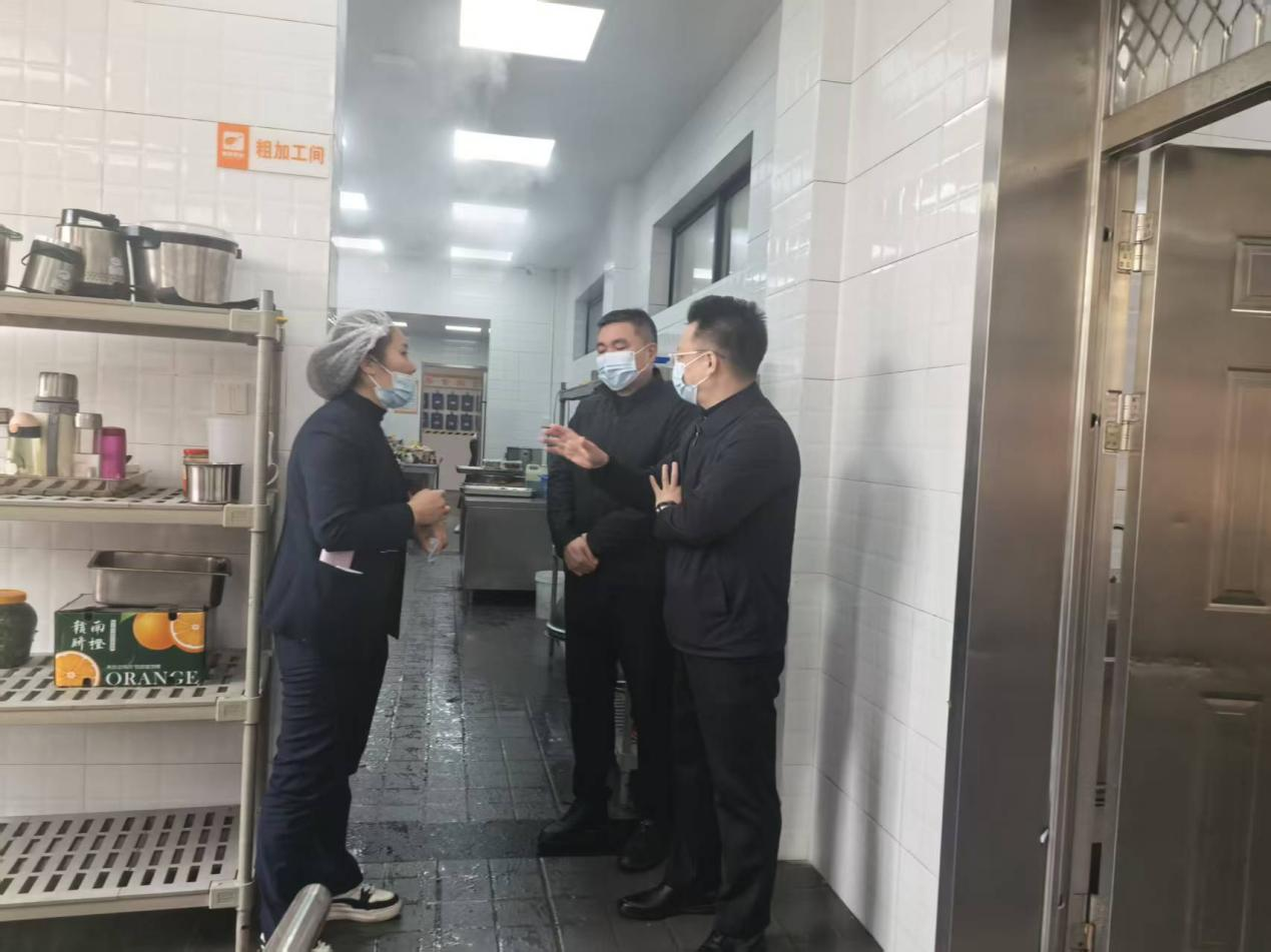 检查组一行深入教工餐厅就餐大厅、后厨操作间、食材储存区、洗消间等重点区域,围绕食品安全、环境卫生、服务流程、用餐环境等方面进行全面细致检查。重点查看食材溯源、储存加工、餐具消毒、食品留样台帐等情况,现场指出问题并提出整改意见。
